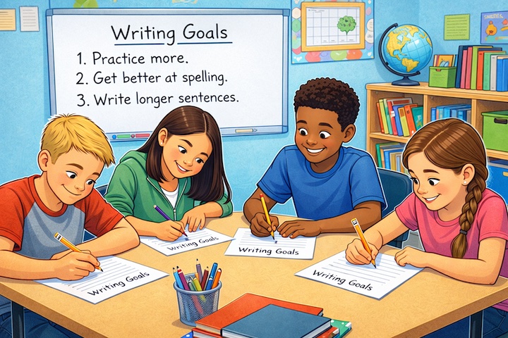 The best way to encourage students to work towards writing goals is to make sure you provide targeted writing instruction and plenty of opportunities for students to write and receive feedback on their writing from their peers and from you.
