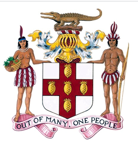 Jamaica’s Coat of Arms shows Indigenous Jamaicans and the pineapples they carried by canoe when they immigrated from Amazonia. DNA shows one of the author’s great great great great grandmothers was Native Caribbean Taino Arawak.