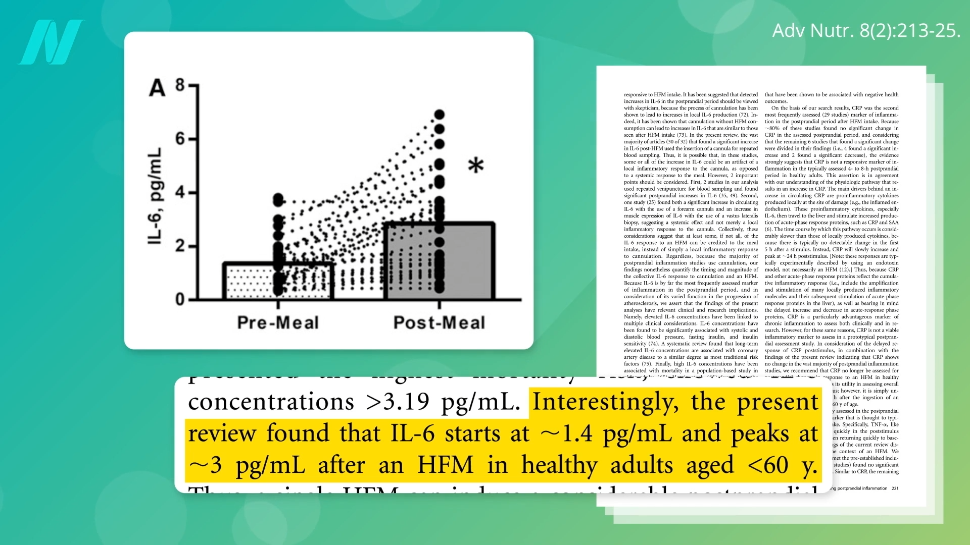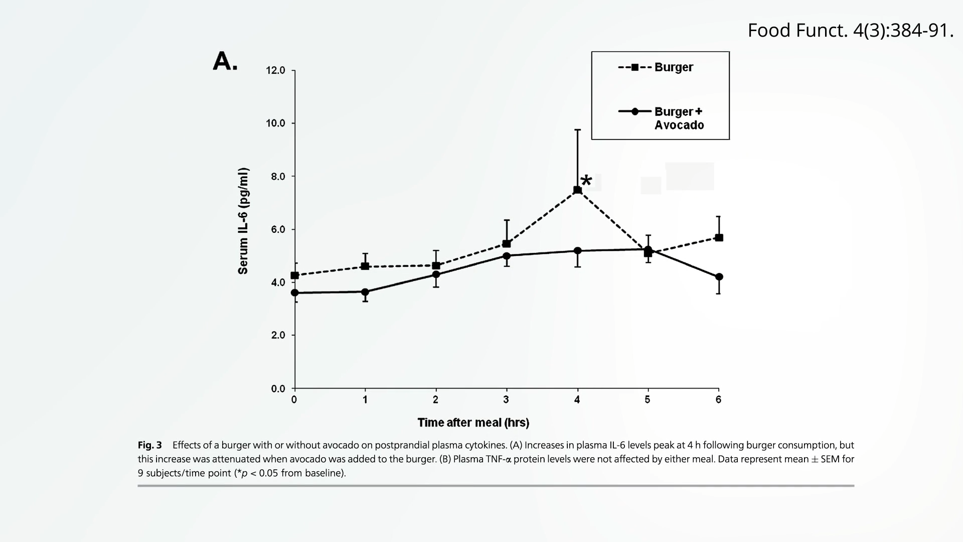 You’ll note in the graph below that IL-6 levels jumped up to about 3 pg/mL after the meal. (You can also check it out at 1:55 in my video.)
