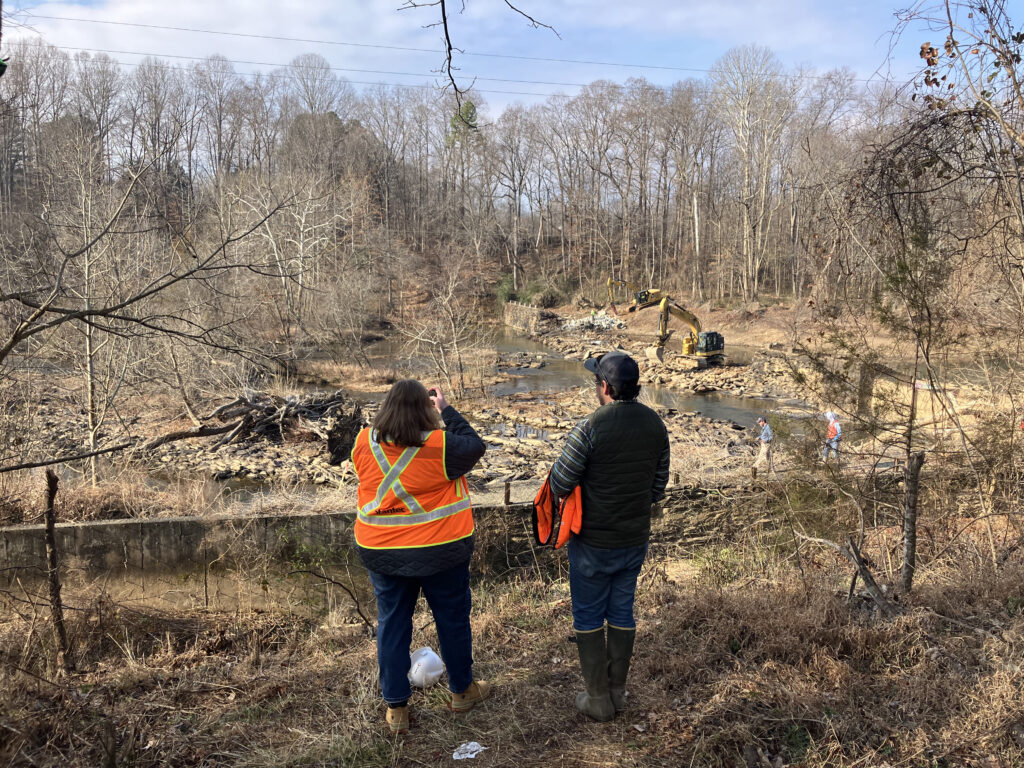 Dam removal confronts these immense challenges with a solution – reconnecting our rivers. Removing a dam can be a big step for a town. A river restoration project requires vision, courage, and partnership. The Ramseur dam removal is an act of optimism – local leaders asking: how can we improve this amazing resource for both people and nature? The leadership and community of Ramseur chose to envision a place where children can safely wade into the cool waters, anglers fish for native species, and the river flows freely, tumbling over rocks as it moves downstream.